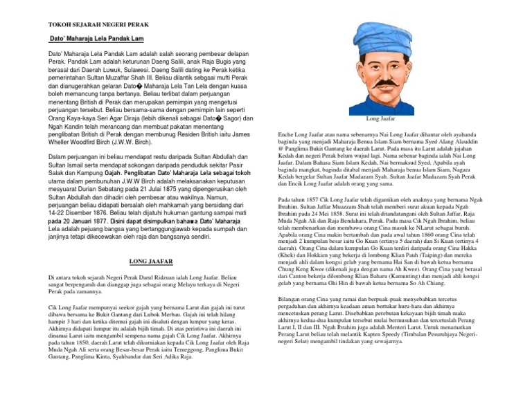 Dato Maharajalela Pejuang Perak from imgv2-1-f.scribdassets.com Daeng salili dating ke perak ketika pemerintahan sultan muzaffar shah iii. For faster navigation, this iframe is preloading the wikiwand page for dato maharaja lela. V dato' maharaja lela dan seputum telah membunuh j.w.w. Di pasirsalak, dato' maharaja lela adalahpembesar yang ditugaskanuntukmemungutcukaidanmenjagakepentingansertakeagungankerajaanmelayu perak dikawasanpasirsalak. Dato maharaja lela is a member of the following lists: Pada november 1874 perak menerima residen british iaitu j.w.w.birch hasil daripada perjanjian pangkor. Perjuangan dato maharajalela di perak latar belakang dato' maharaja lela ialah orang besar berlapan perak dan penghulu di pasir salak. Pasir salak cukup sinonim dengan kisah sejarah kebangkitan orang.